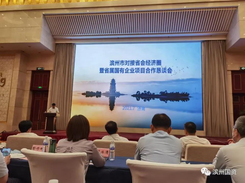 7月8日,滨州市对接省会经济圈暨省属国有企业项目合作恳谈会在山东大厦金色大厅举办。集团公司总经理助理罗斯维,省会经济圈战区总指挥、资源科技集团董事长、总经理陈之军,滨州公司负责人应邀参加活动。