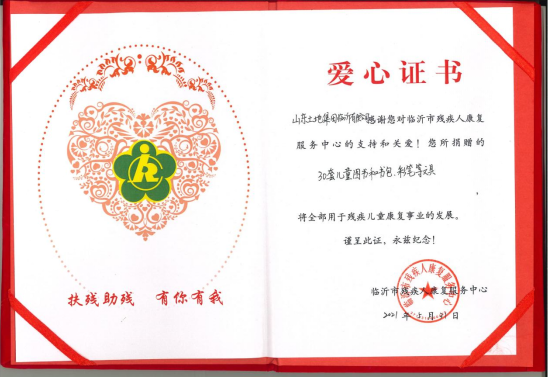 临沂公司为市康复医院残疾儿童送上爱心书包及图书、绘画笔等物品,以表达对残疾儿童的关爱,对康复教师奋斗一线的慰问,以及帮助残疾儿童回归社会的支持。