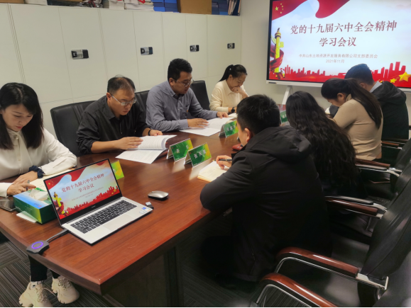 1116日,土地资源开发服务有限公司党支部召开专题会议,集中学习党的十九届六中全会精神。土地资源开发服务有限公司党支部书记任延开主持会议,土地业务部、资源开发服务公司全体党员参加会议。